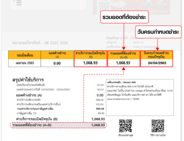 ตัวอย่างใบแจ้งค่าบริการทรูมูฟ เอช รูปแบบ Share Plan